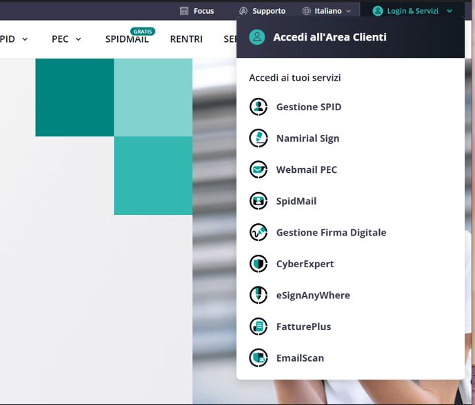 - Dal menù in alto a destra "Login&Servizi", seleziona "WEBMAIL PEC"